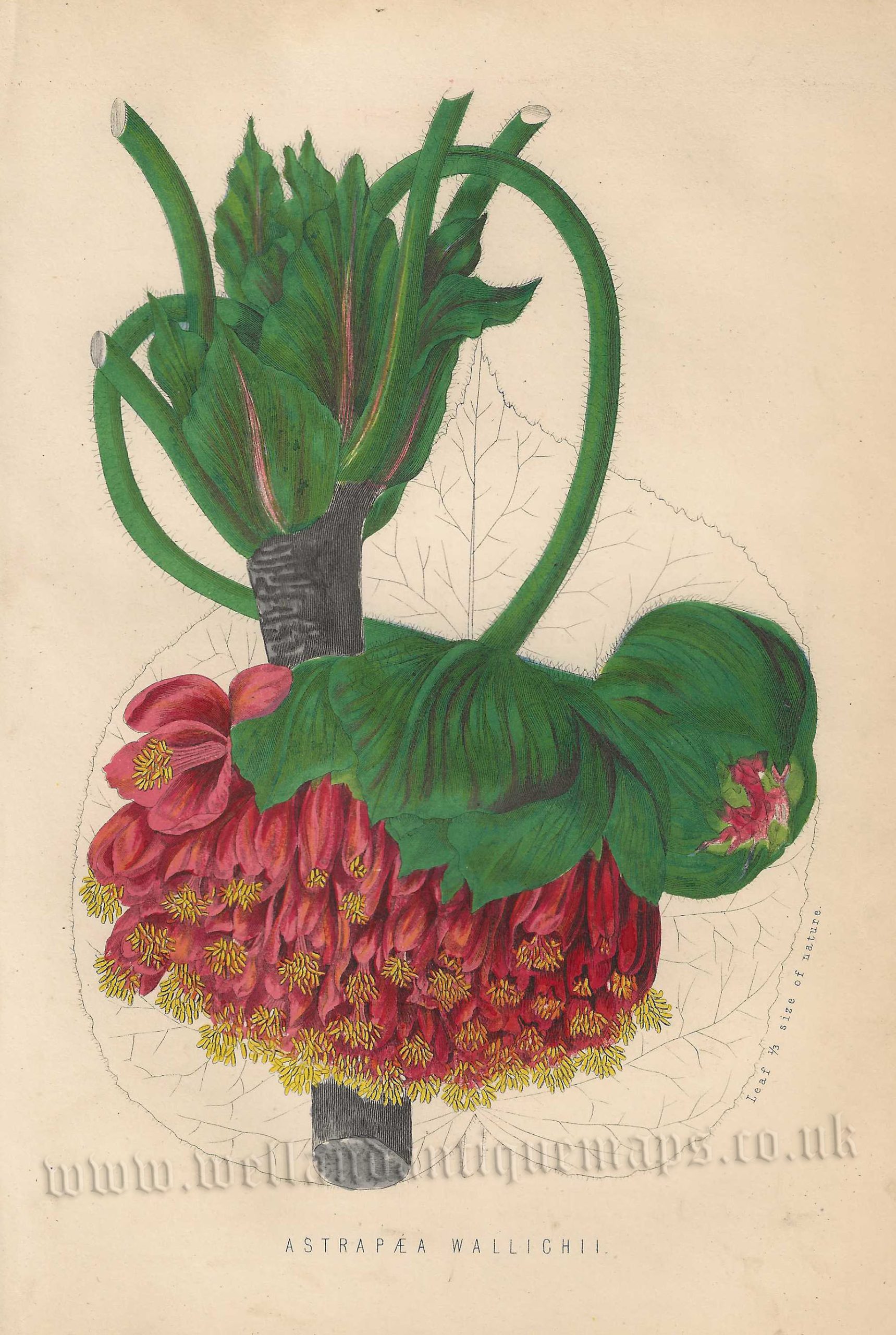 A very attractive Victorian chromolithograph of the Dombeya Wallichii (formerly known as Astrapaea Wallichii) which appeared in James Anderson’s The New Practical Gardener (London, Edinburgh & Glasgow: William Mackenzie, 1875).