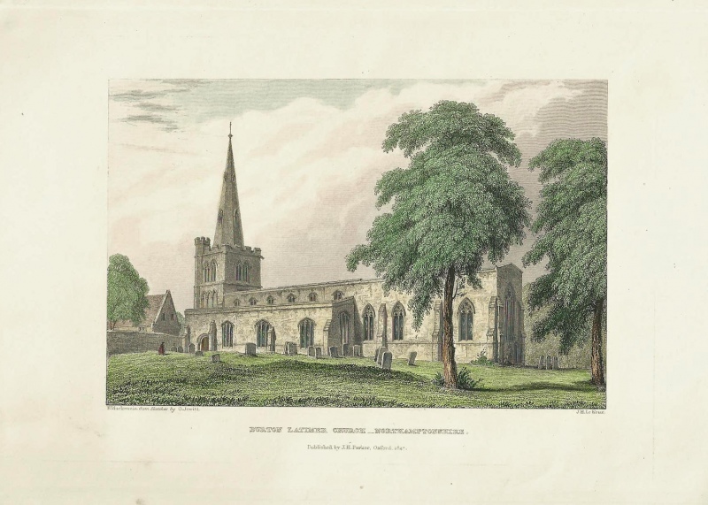 A very finely engraved and rare mid 19th century view of Burton Latimer Church, Northamptonshire that appeared in The Architectural Notices or the Churches of the Archdeaconry of Northamptonshire (London & Oxford: J. H. Parker, 1849)