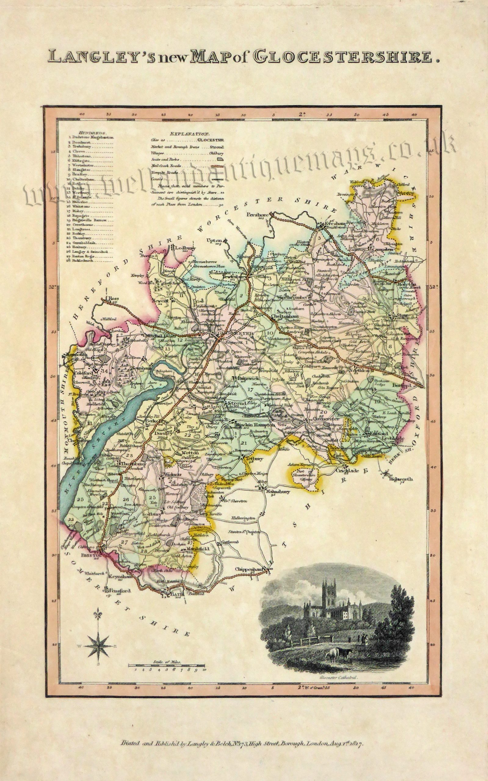 ‘LANGLEY’S new MAP of GLOCESTERSHIRE.’ by Langley / Belch c.1817