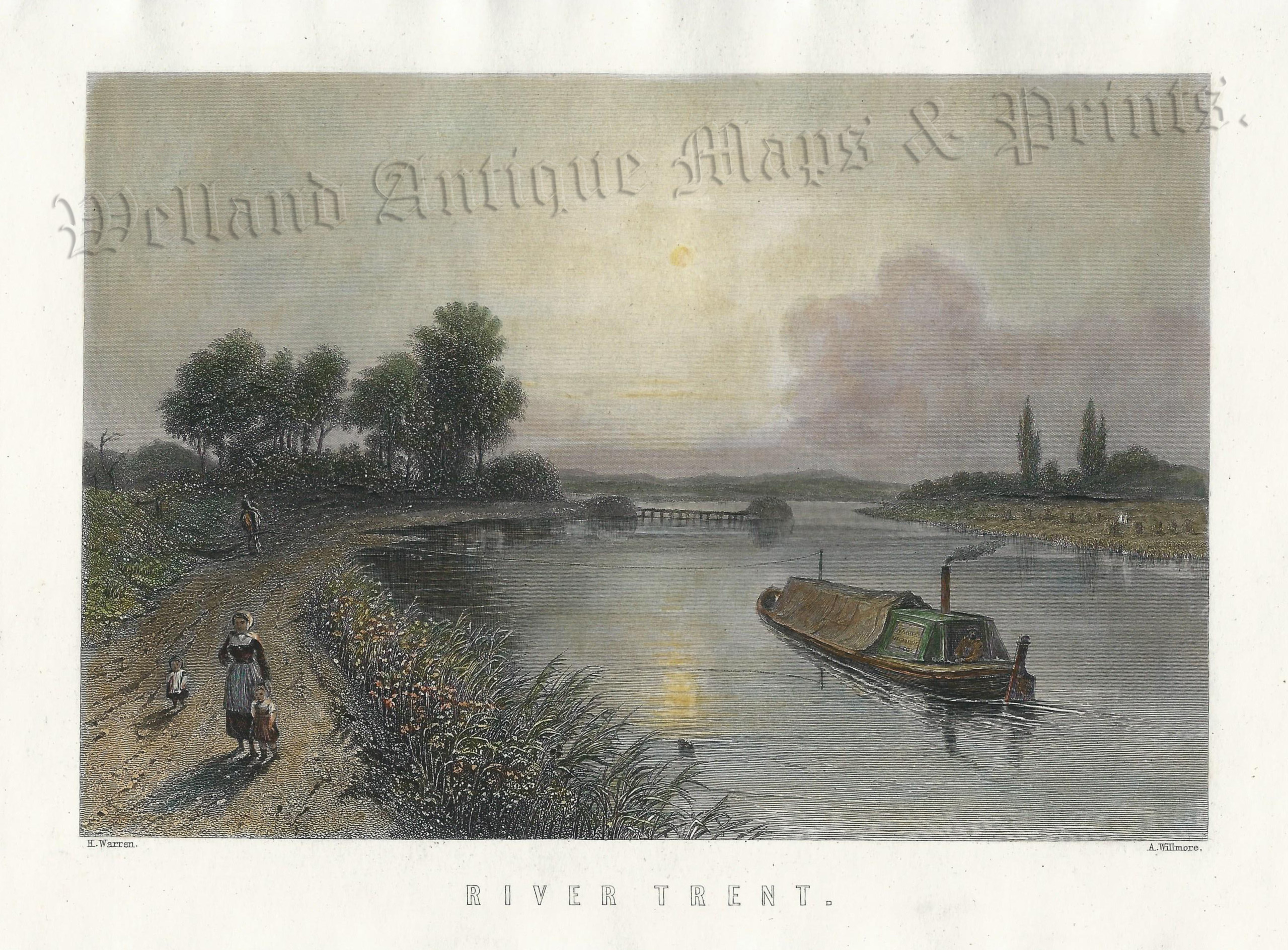 An attractive and picturesque late 19th century view of the River Trent (possibly on the Nottinghamshire / Lincolnshire border) which was drawn and engraved by H. Warren and A. Willmore, respectively, and published in the Rev. Thomas Milner’s Gallery of Geography (London, Edinburgh & Glasgow: William Mackenzie, 1897).