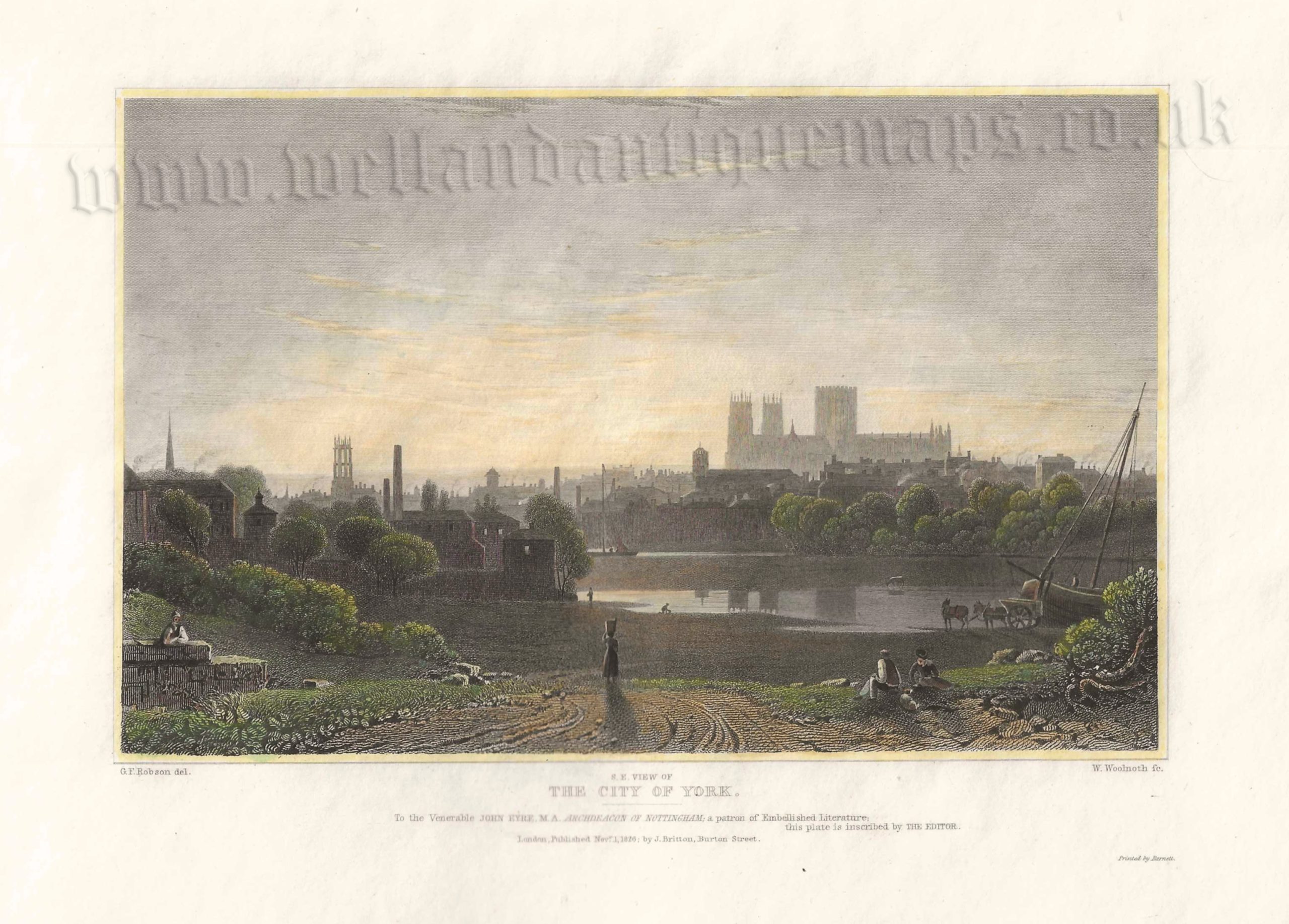 A very attractive early 19th century view of the City of York from the south-east which was drawn and engraved by G. F. Robson and W. Woolnoth, respectively, and published in [G. F. Robson’s] Picturesque View of the English Cities (London: John Britton, 1828).