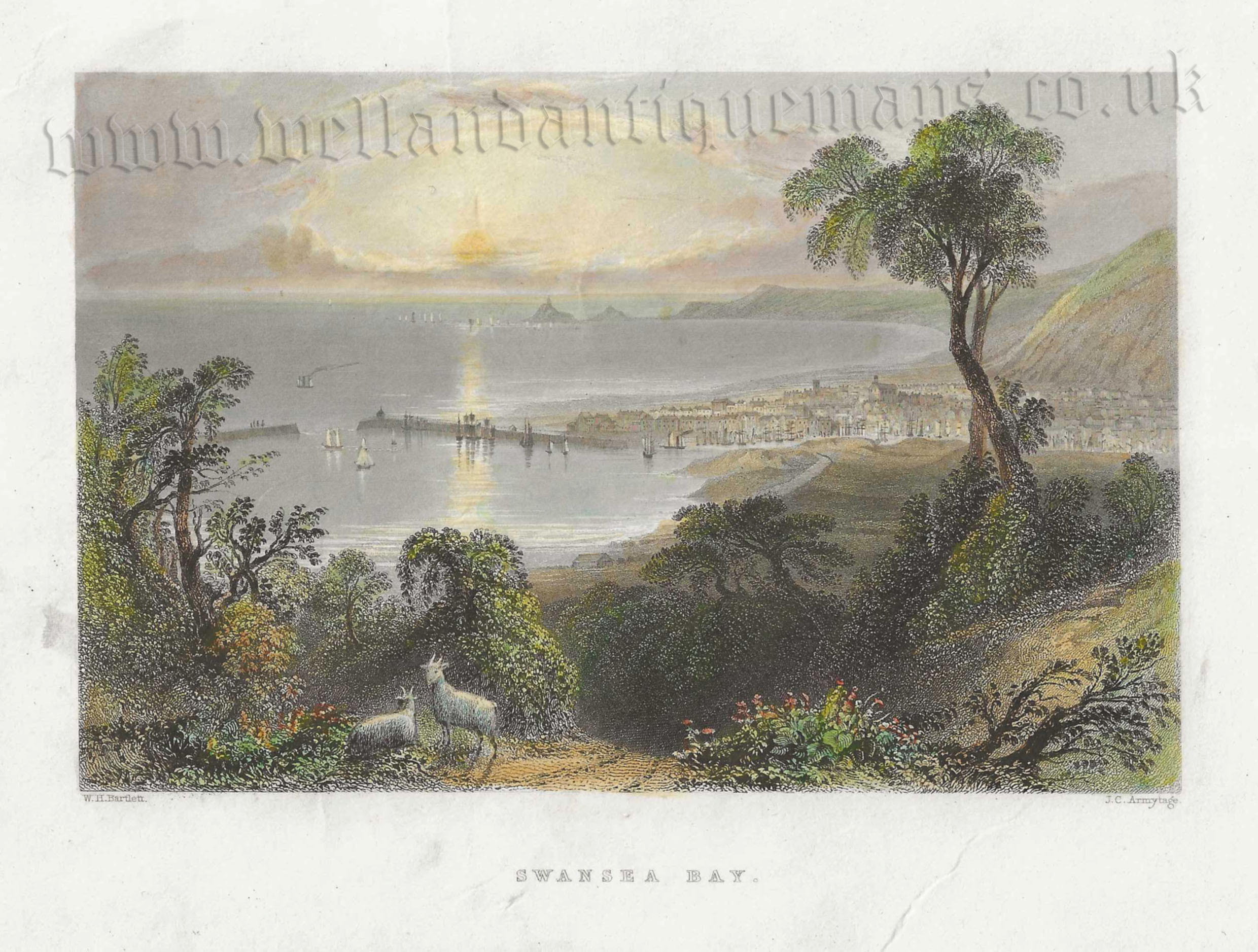 A very attractive 19th century picturesque view of Swansea Bay, West Glamorgan, Wales which was drawn and engraved by W. H. Bartlett and J. C. Armytage, respectively, and published in William Finden’s The Ports, Harbours, Watering-Places and Coast Scenery of Great Britain (London: George Virtue , 1836-1842).