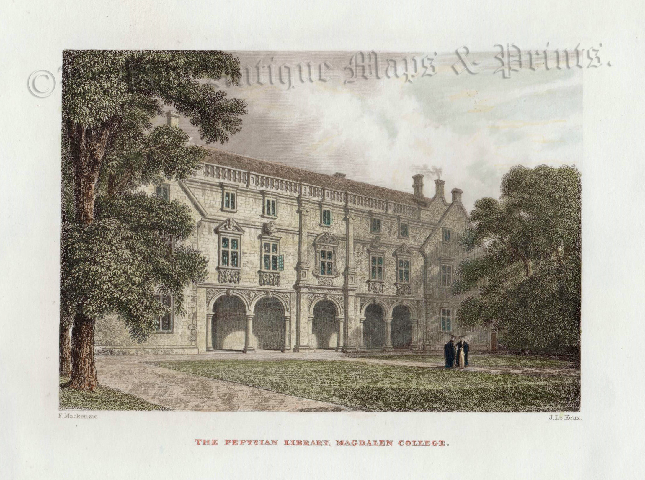 A n attractive 19th century view of the Pepysian Library, Magdalene College, Cambridge which was drawn and engraved by Frederick Mackenzie and John Le Keux, respectively, and published in Memorials of Cambridge (London: Tilt & Bogue, 1841/42).